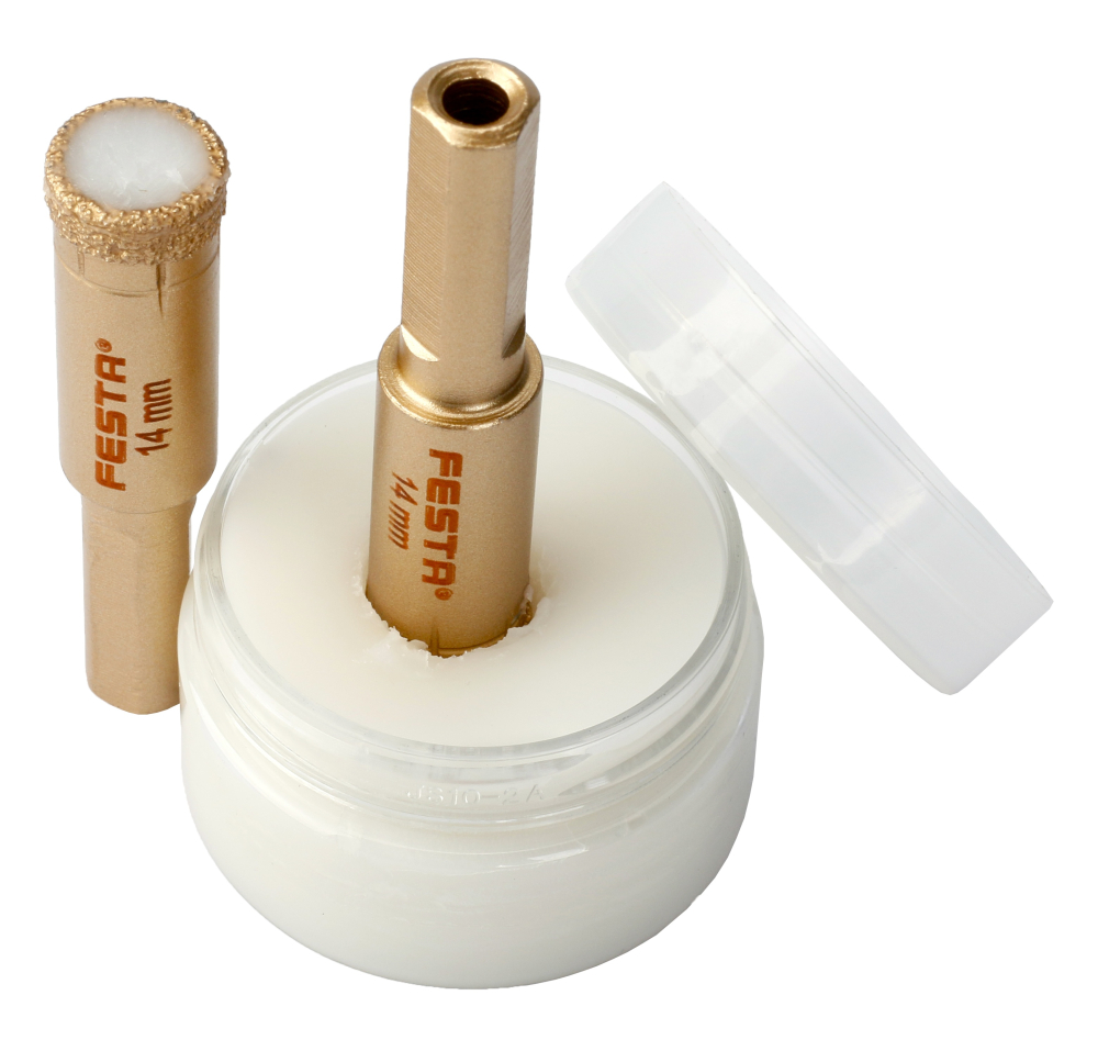 - vosk možno použiť dvoma spôsobmi - za studena vtláčaním do korunky, alebo - za tepla pri vrtaní, korunku po zastavení stroja vložte na cca 2 sek. do vosku a potom nechajte 3 - 5 sek. schladnúť, potom možno pokračovať vo vrtaní