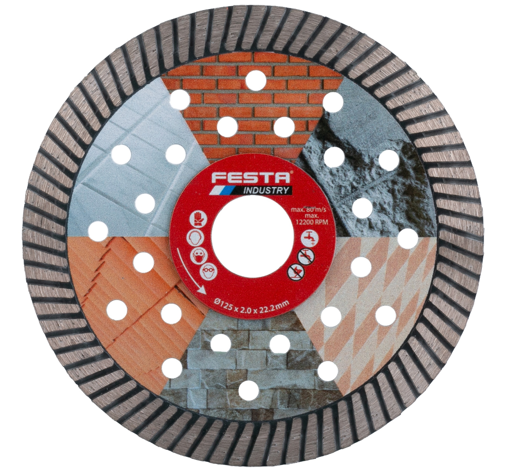 - profesionálny diamantový rezný turbo kotúč na suché aj mokré rezanie