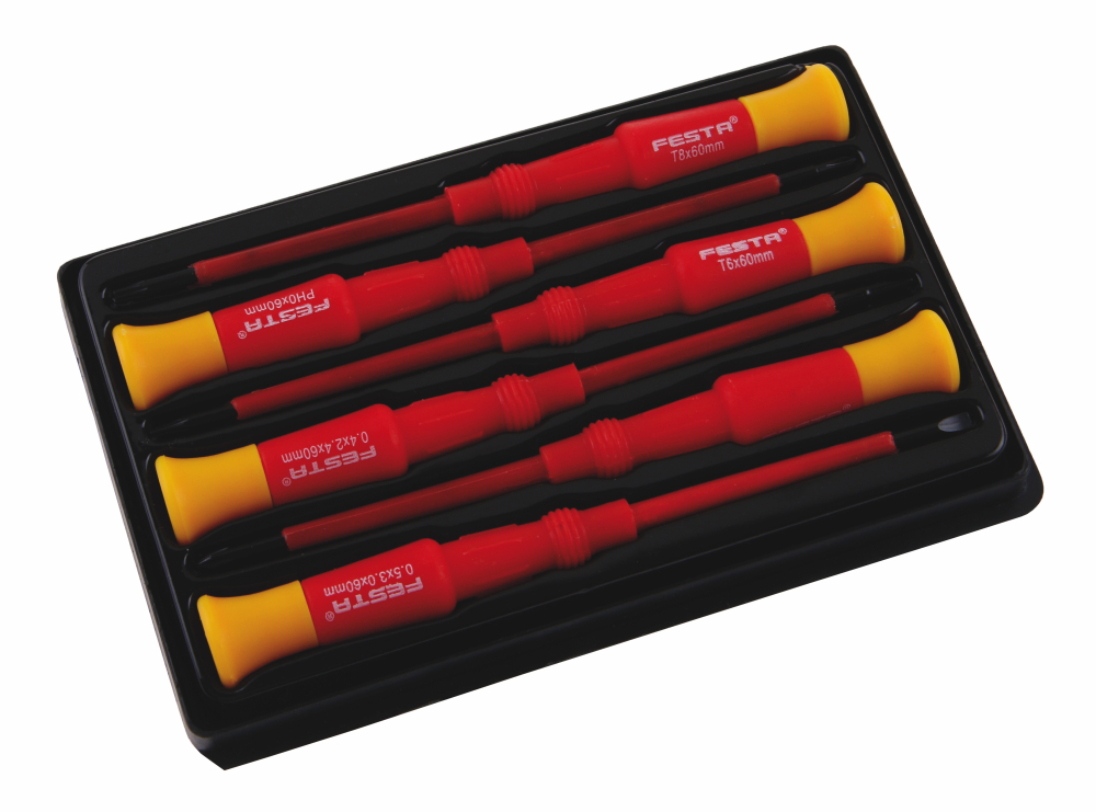 súprava 6 ks jemných elektrických skrutkovačov s certifikátom VDE
