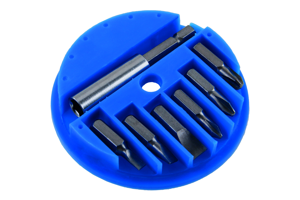 • Bity v plastovej okrúhlej krabičke s otvorom na vysunutie potrebného bitu.
