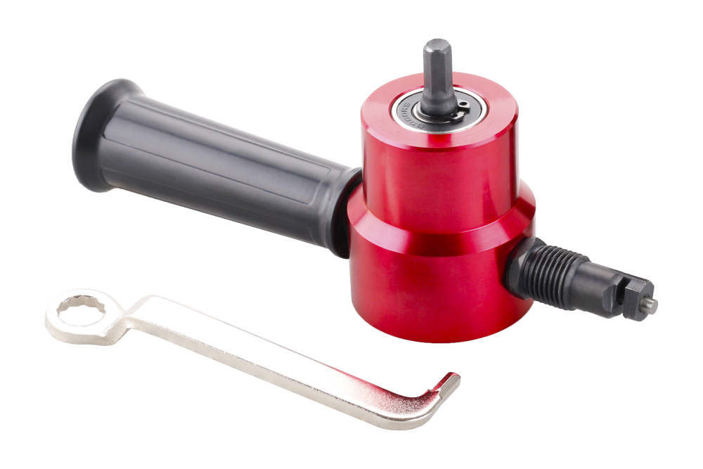 - Nástavec na strihanie plechu upnutie na vŕtačku alebo akumulátorovú vŕtačku s normálnou hlavou šesťhranná stopka 8 mm zabraňuje prešmyku