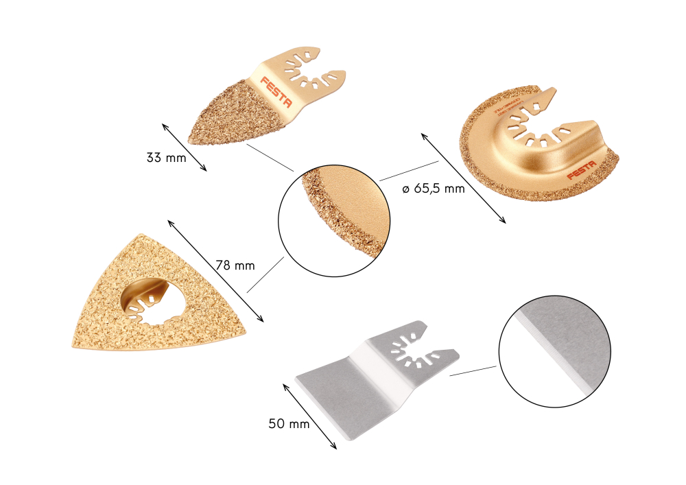 - sada nástrojov s univerzálnym OIS uchytením pre oscilačné brúsky
