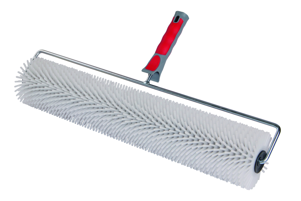 Nivelačný valček určený na odvzdušňovanie a rovnomerné rozprestieranie samonivelačných stierok a poterov po ich nanesení. Ideálny na prácu so strednovrstvovými, hrubovrstvovými a epoxidovými stierkami a potermi. Vďaka plastovým hrotom s výškou 34 mm vytvára jemné vibrácie, ktoré efektívne odstraňujú vzduchové bubliny a napomáhajú dokonalému rozliatiu po ploche a kontaktu hmoty s podkladom. Pevné plastové telo s ergonomickou pogumovanou rukoväťou zaručuje pohodlnú manipuláciu. Rukoväť je vybavená otvorom na teleskopickú tyč, čo umožňuje prácu v stoji a predĺžený dosah aj na veľkých plochách. Odstránenie vzduchu z poteru je kľúčové pre dosiahnutie hladkej, trvácnej a estetickej povrchovej úpravy.
