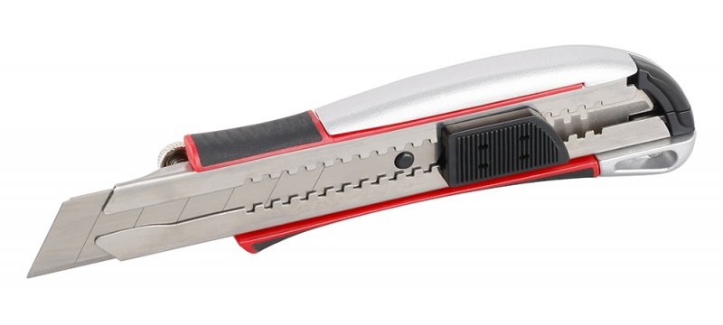 odlamovací nôž s kovovým telom a vyztuženým vedením čepele