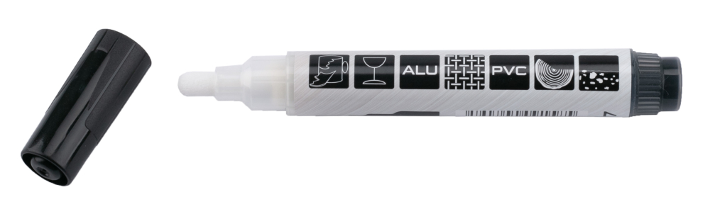 Špeciálny permanentný značkovač s hrubým hrotom 4 – 6,5 mm je určený na popisovanie železných konštrukcií, skla, plastov či fólií.