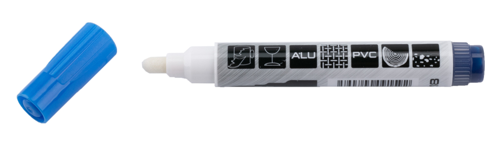 Špeciálny permanentný značkovač s hrubým hrotom 4 – 6,5 mm je určený na popisovanie železných konštrukcií, skla, plastov či fólií.
