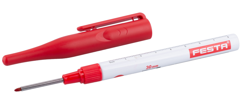 Permanentný hĺbkový značkovač s tenkým hrotom s priemerom len 3 mm umožňuje precízne označovanie malých priemerov aj skrz materiály s hrúbkou až 30 mm.