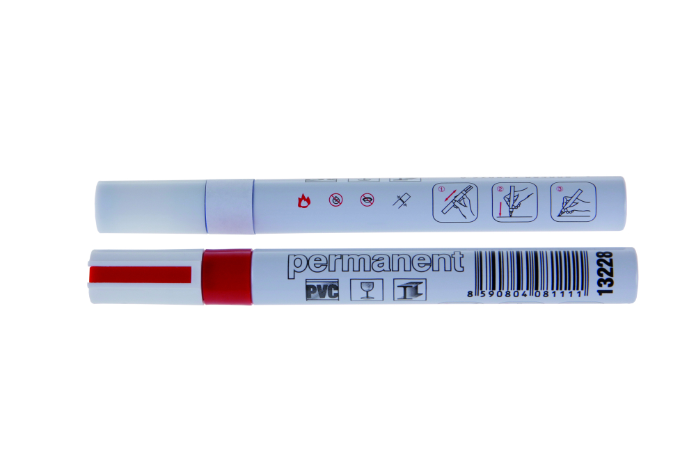 - Permanentný značkovač, hliník, červený