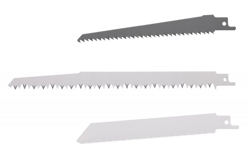 - Praktická sada pílových plátkov na kovy, drevo, plasty do elektrickej píly ocasy, 3 kusy od typu HCS - vysoko uhlíková oceľ, Bi - Metal - materiál odolávajúci väčšiemu teplotnému zaťaženiu, dlhšia životnosť ostrí plátku