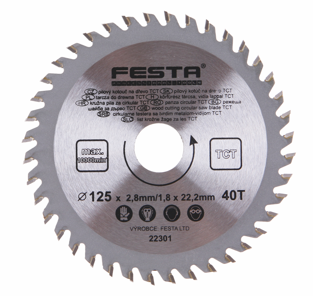- Pílový kotúč do dreva TCT 125x2,8x22,2/20mm 40 zubov