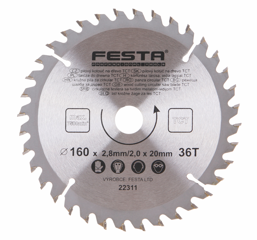 - Pílový kotúč do dreva TCT 160x2,8x20mm 36 zubov