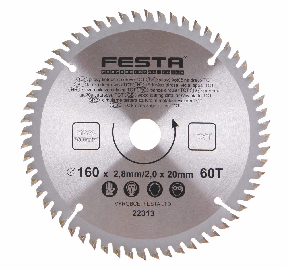 - Pílový kotúč do dreva TCT 160x2,8x20mm 60 zubov