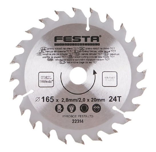 - Pílový kotúč do dreva TCT 165x2,8x20mm 24 zubov