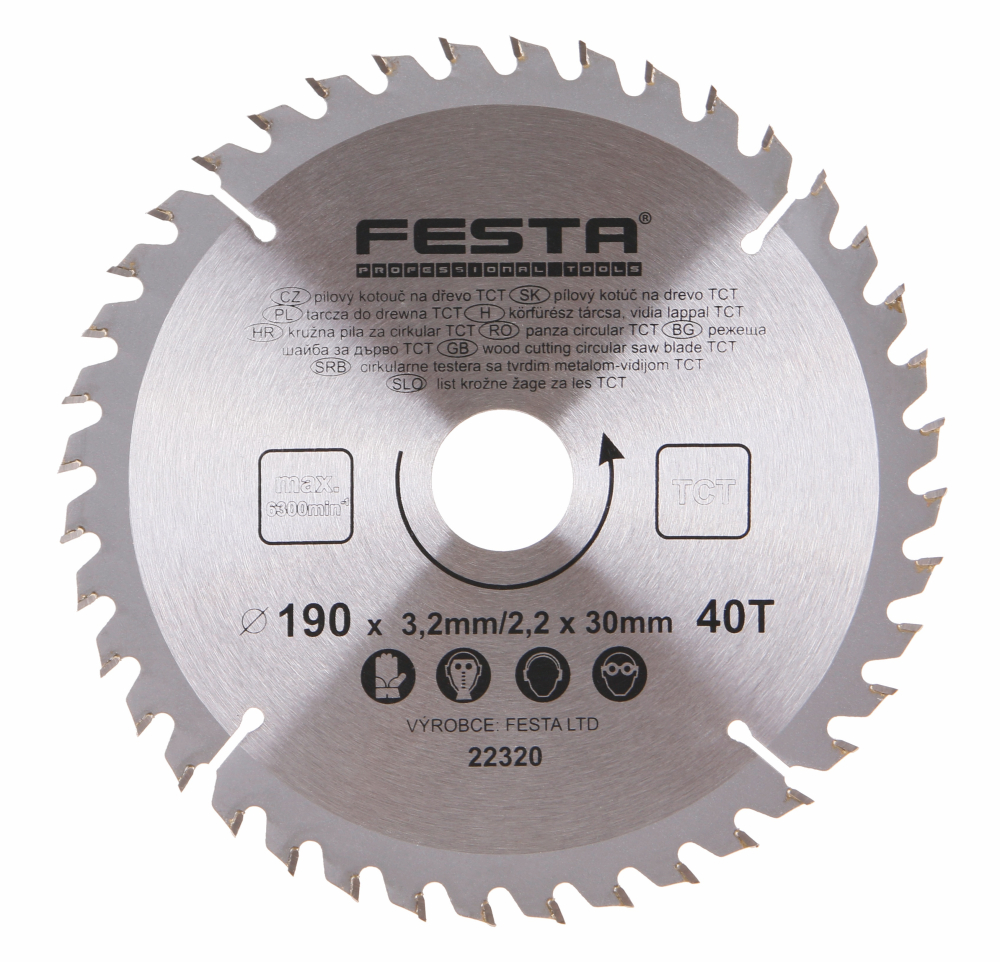 - Pílový kotúč do dreva TCT 190x3,2x30mm 40 zubov
