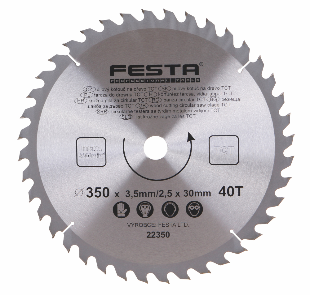 - Pílový kotúč do dreva TCT 350x3,5x30mm 40 zubov