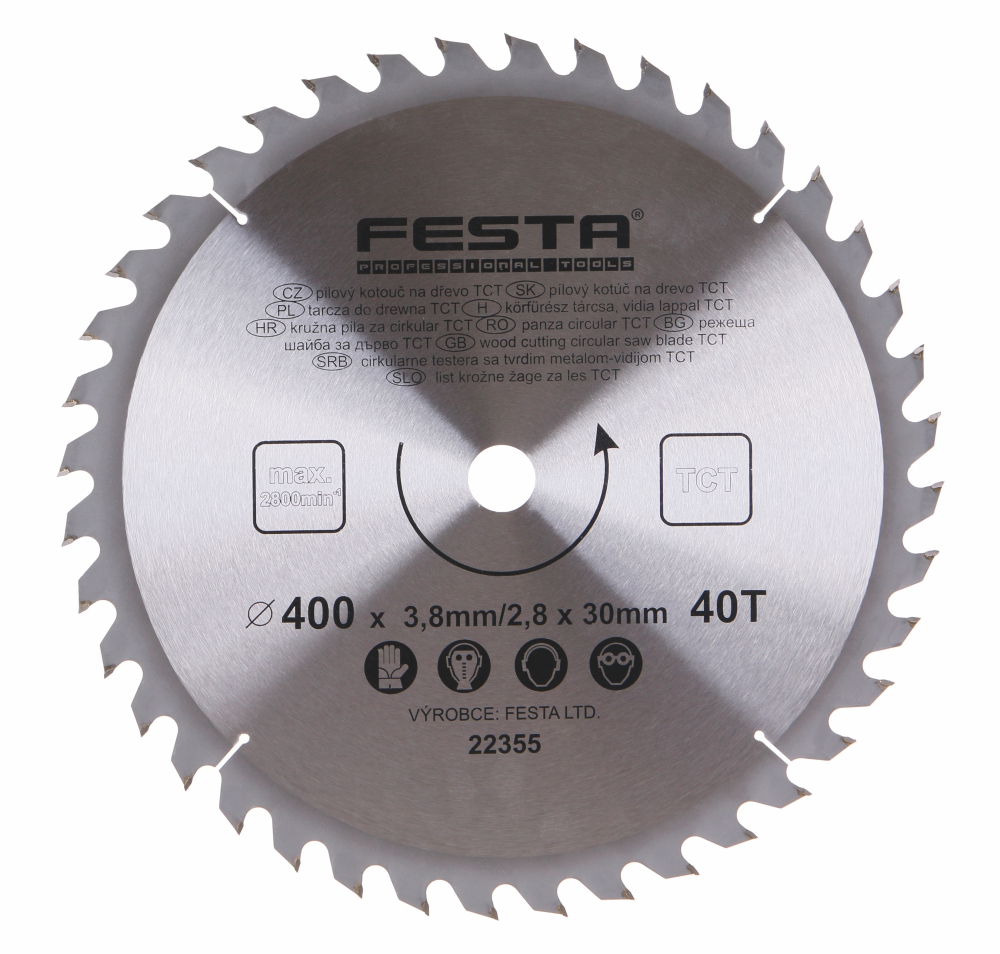 - Pílový kotúč do dreva TCT 400x3,8x30mm 40 zubov
