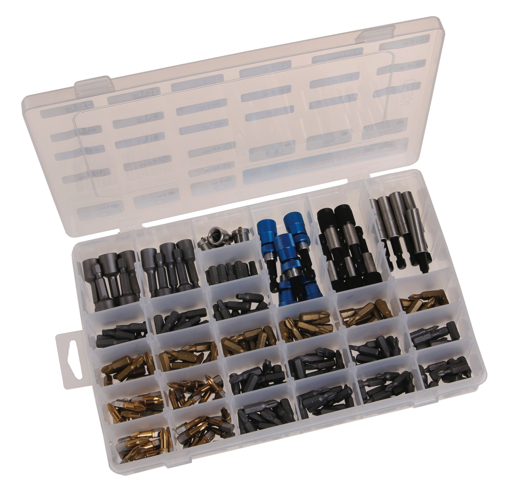 - praktická predajná sada bitov a adaptérov, ktoré sú vyrobené presným kovaním (zvyšuje pevnosť až o 20% oproti obrábaným) z chrómvanadiovej ocele S2 (vynikajú húževnatosťou), kalené na 61-62HRC.