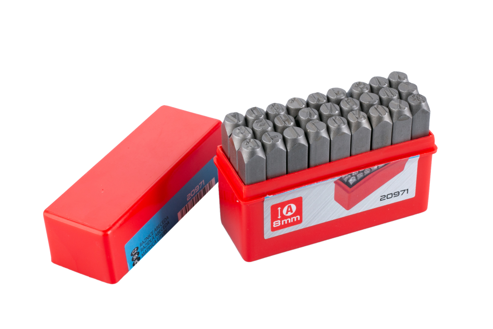 - Ručné razidlo - písmená abecedy, kvalitná uhlíková oceľ - pevnosť do 800 N/mm2