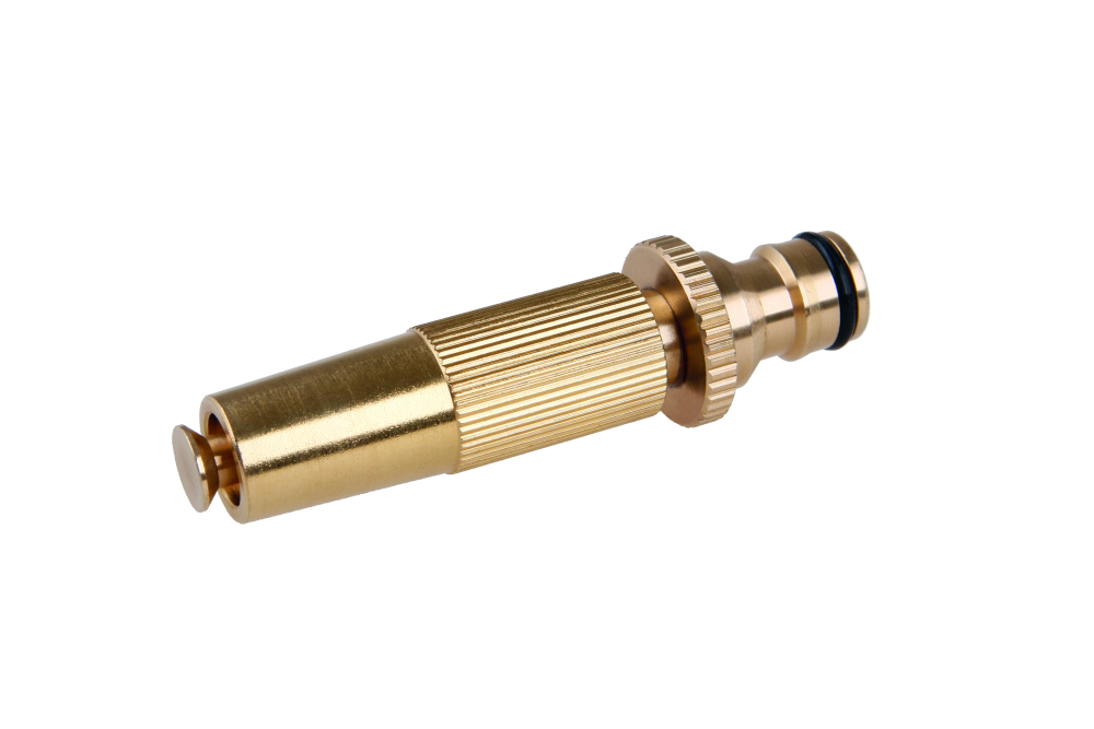 Postrekovacia mosadzná hubica, otáčaním sa dosiahne plného prúdu alebo kužeľového rozstrekovania.