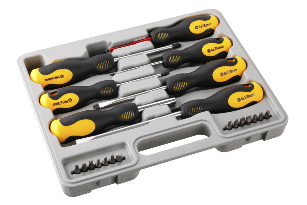 - 4x plochý skrutkovač 4*75, 6*100, 8*150 a elektro 3*75