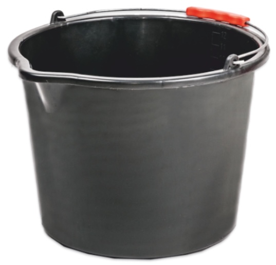 Odolné vedro z kvalitného plastu s výlevkou, stupnicou a pevnou rukoväťou na pohodlné miešanie a prenášanie materiálov