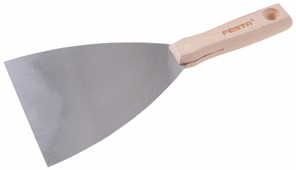 • maliarska stierka (špachtľa) s brúseným oceľovým rezom a s drevenou nitovanou rukoväťou