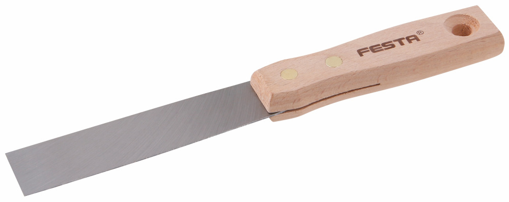• maliarska stierka (špachtľa) s brúseným oceľovým rezom a s drevenou nitovanou rukoväťou