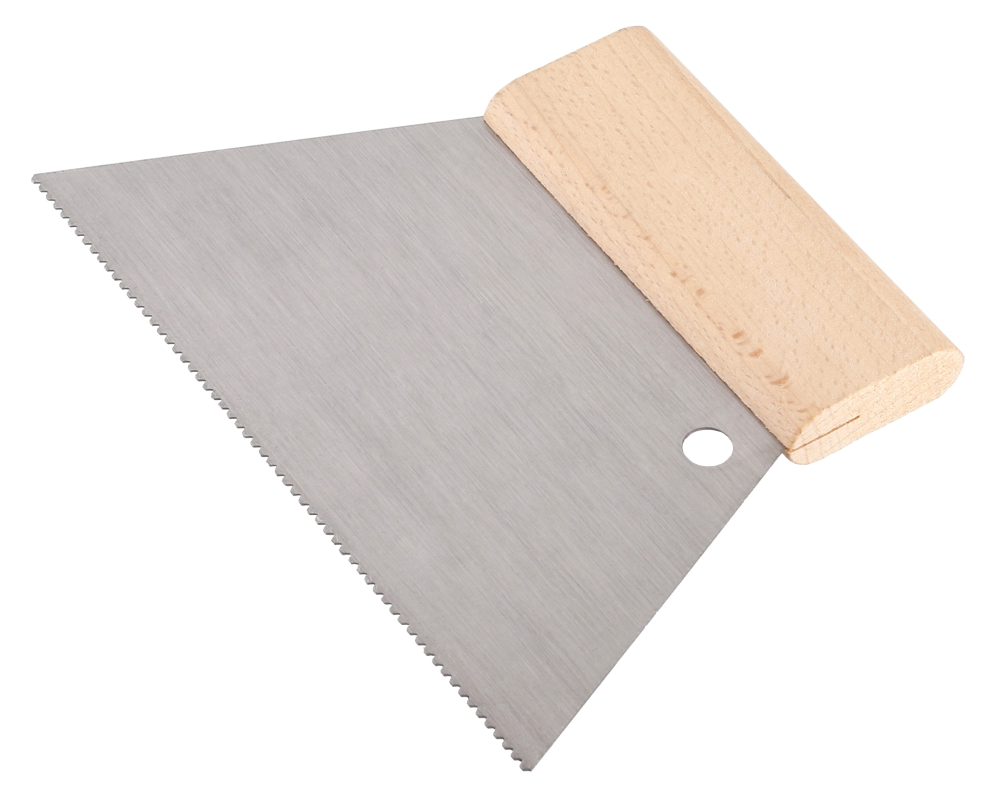 Plastová stierka so zubmi rôznych tvarov a rozmerov na roztieranie lepidiel a tmelov