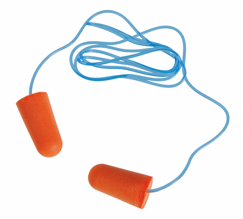 Jednorázové štuple do uší spojené šnúrkou v krabici, ktorá slúži ako podávač