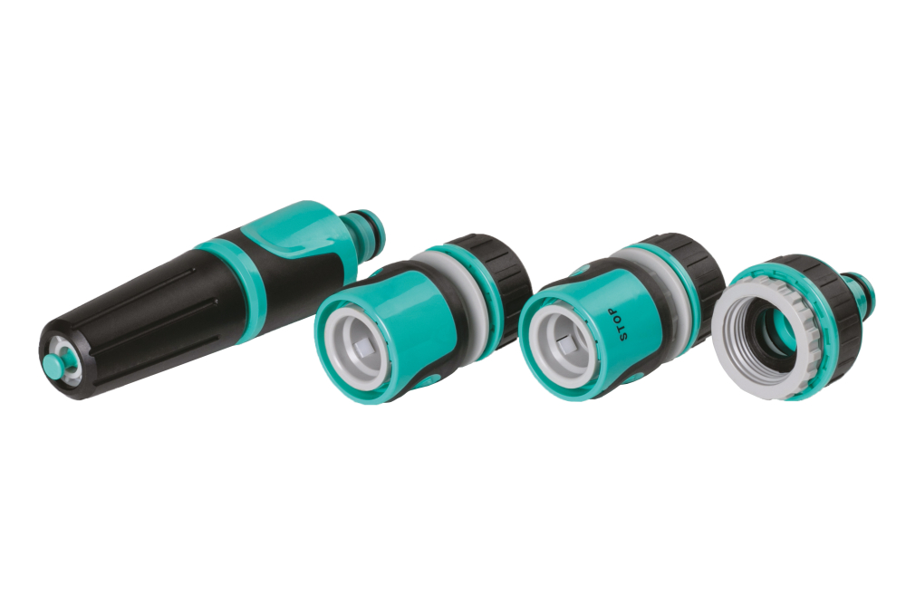 - stop-rýchlospojka a rýchlospojka na hadici 1/2", adaptér na kohútik 1/2 - 3/4"