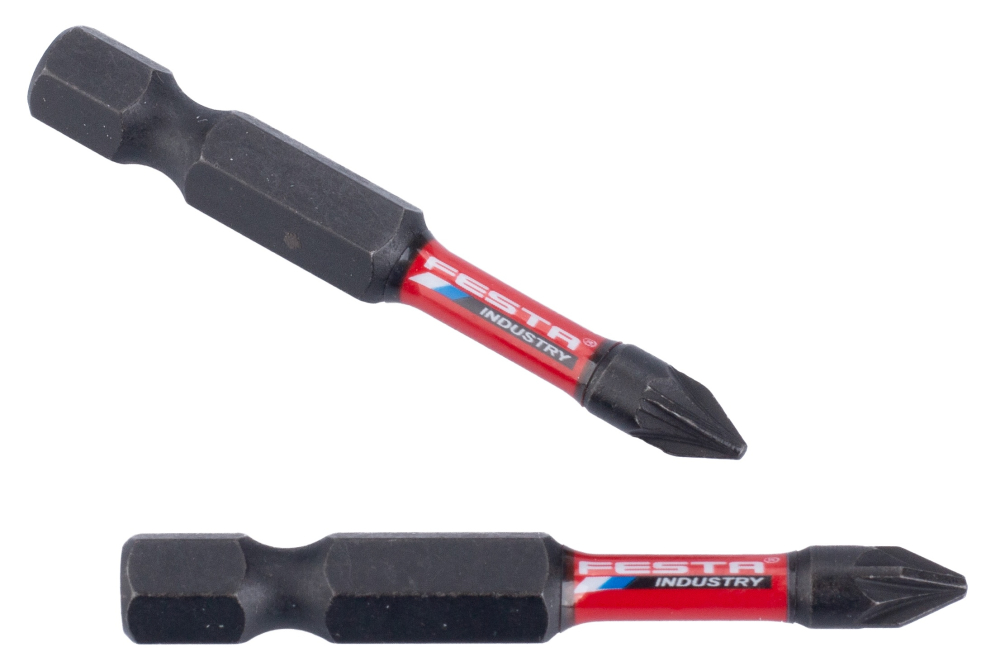 Torzné bity FESTA INDUSTRY sú vyrobené z kvalitnej S2 ocele, ktorá zaručuje odolnosť a dlhú životnosť
