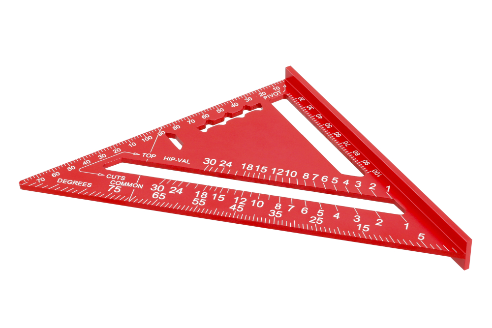 - má stupnicu a špeciálne výrezy, naznačené uhly pre široký rozsah použitia, zameriavanie, označovanie a práca s drevom, kovmi, plastmi a pod.