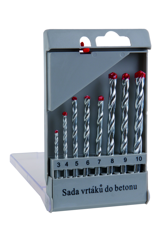 • sada najpoužívanejších priemerov vidiích vrtákov 3, 4, 5, 6, 7, 8, 9, 10 mm s valcovou stopkou