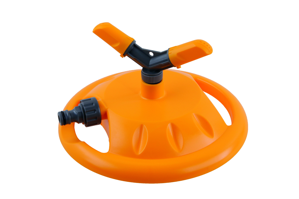 Rotačný 2-ramenný zavlažovač s pripojením hadicovou rýchlospojkou, min.70 kPa a max.550 kPa.